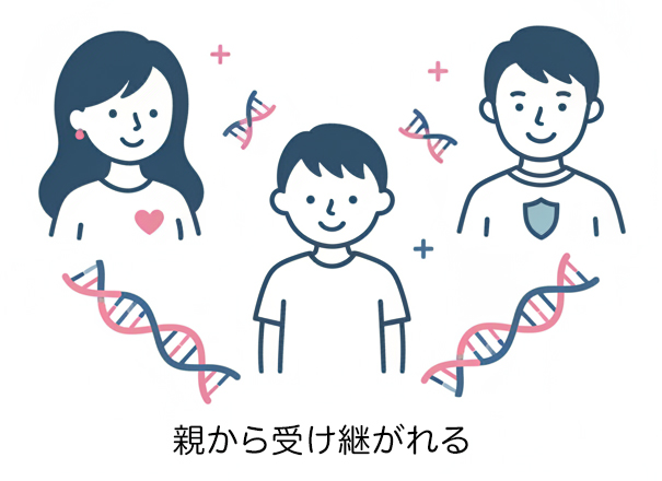 遺伝性腫瘍症候群の原因である「遺伝子変異(病的バリアント)」は親から子へ、性別に関わらず50%の確率で遺伝します。
