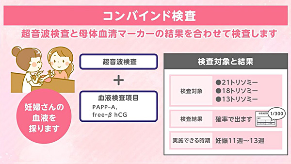 非確定検査の精度についてです。母体血清マーカーとコンバインド検査については、陽性を正しく陽性と判定できる割合である感度はそれほど高くないのですが、陰性を正しく陰性と判定できる割合である特異度が高い検査になります。そのため検査結果の解釈やその後の対応については、ご自分たちの考えを尊重した上で担当の先生ときちんと話し合う必要があります。